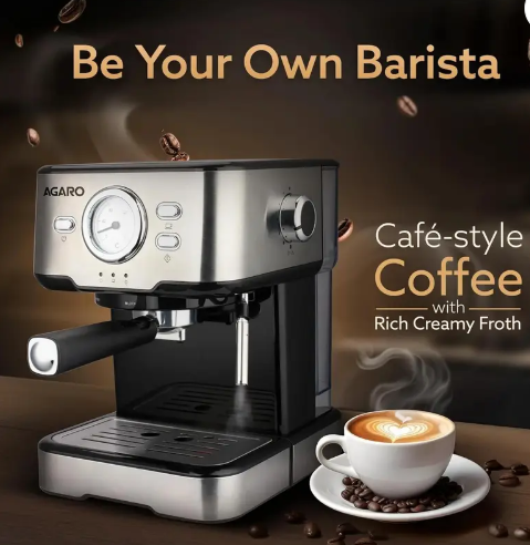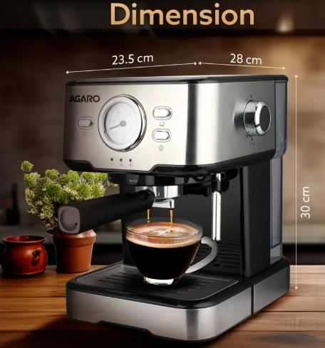 AGARO Imperial Espresso Coffee Maker, Coffee Machine, 15 Bars, With Foaming Milk, Frother Wand for Espresso, Cappuccino, Latte and Mocha, Steam Espresso Maker For Home, Adjustable Milk Frothing and Double Temperature Control System, Stainless Steel, 1100W.