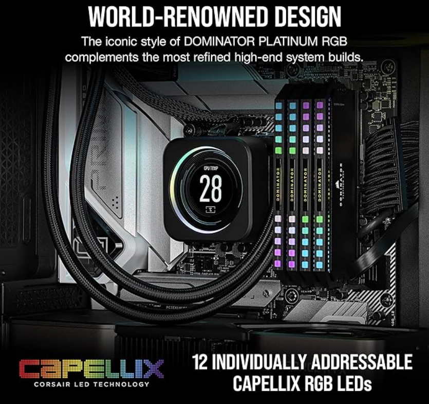 - CORSAIR’s patented DHX cooling that maintains low temperatures for DDR5 by cooling both the ICs and the board itself with a dedicated heatsink
