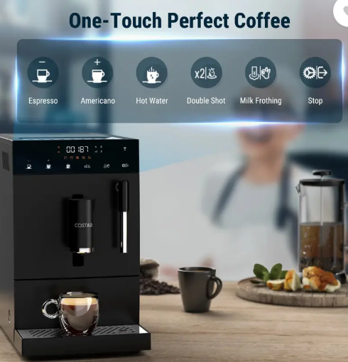 COSTAR Fully Automatic Espresso Machine | 19 Bar Italian Pump, One-Touch 30s Fast Brew, Automatic Bean Grinder, Bean to Cup Coffee Machine with Milk Frother | Compact Coffee Maker for Home, Office Use ☕One-Touch Brewing for Busy Mornings: Ideal for office and home use, this coffee maker machine for home is a bean to coffee machine that transforms whole beans into barista-quality coffee with just one button. No more waiting or complicated setups!
