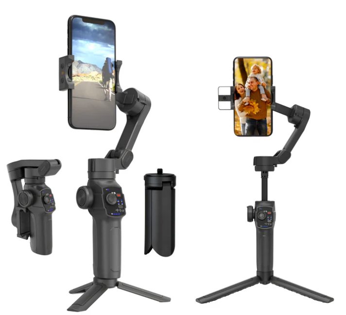 The Digitek DSG-009F AI Gimbal elevates your videography with wide-angle capture and advanced AI Face Tracking for automated subject focus. Its 3-axis stabilization ensures smooth, steady footage, while built-in telescopic rods offer extendable and adjustable shooting options. Enhance audio quality with external microphone support, and seamlessly switch between horizontal and vertical orientations for diverse filming needs. Compatible with a wide range of smartphones (up to 192mm diagonal, 55-90mm width, and 7-12mm thickness), this gimbal offers universal compatibility. It’s designed to provide both creative flexibility and professional-quality results.